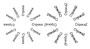 выглядит одинаково в любом положении, но немного "грязноват". Текст примитива "Строка2" хорошо