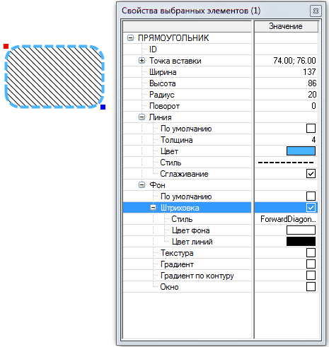 Свойства уже введенных примитивов можно изменить через диалог "Свойства выбранных элементов" (клавиша F3, либо кнопка "Выбор").